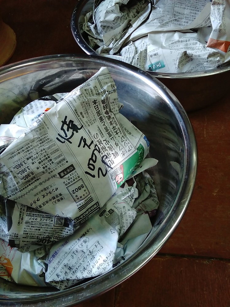 →大タライにセットしたふるいの上から中身をだします(重い)。