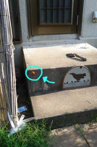 アツアツ鉄板屋根のプレハブ工房より 暑中お見舞い申し上げます!! ついでに近況を御報告。 朝の涼しいうちに工房に行って一仕事、と、一歩出たら、 私より早起きで仕事を終えた蝉さんがいた痕跡が。 (ゆうべ予告してくれれば、スケッチしたのに・・・) ←…