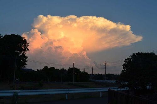 命にかかわる高気温とやらが続いてます。 熊谷の隣、深谷市の工房も 暑い熱い(・・・中略・・)熱いあちい熱い。 夕方、吹く風も少し涼しくなったので 水でも撒こうと外に出ました、ら。 南の空一杯に、みごとな積乱雲と金床雲。 その神々しさに、思わずカメ…